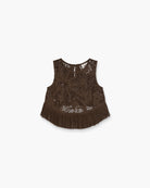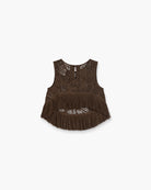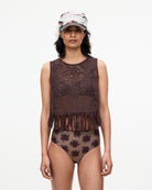 The Astrea Aura crochet top features a see-through crochet pattern that pays tribute to the blazing summer sun. With a cropped silhouette and soft fringing tracing the hem, it offers a modern take on Bohemia.