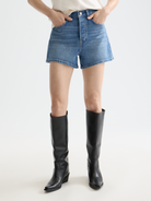 Slip into the relaxed ease of our medium wash denim shorts. A versatile addition to your spring collection, these shorts are perfect for crafting a casual yet fashionable look for any daytime excursion.
