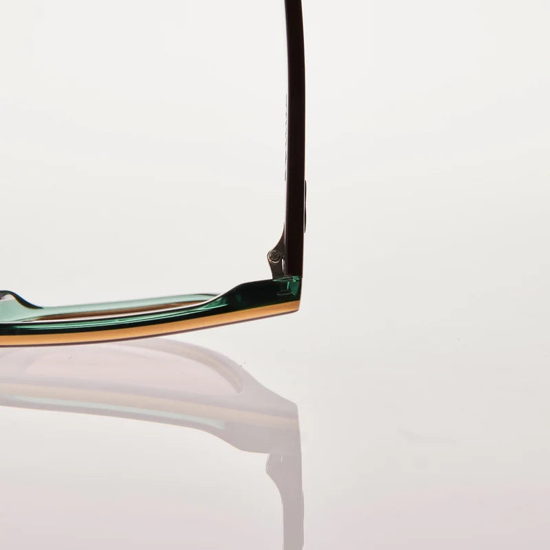 The epitome of eyewear style in the Burgundy Trans Green with Rose Bio Lens.