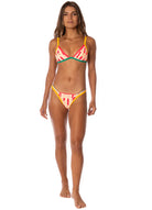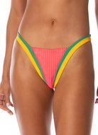 Flowing along your curves like the gentle slop of the shoreline, the Trinity bikini bottom is sure to elevate and flatter your figure. It's a new Maaji silhouette, with a high rise, sexy stripes, a reversible print, and cheeky coverage. Let the sun shine in with the Trinity bikini bottom!