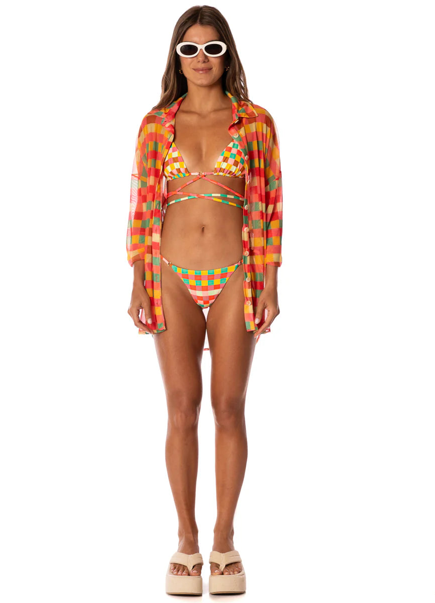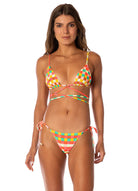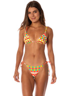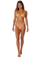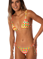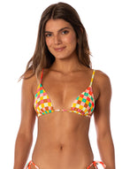 Balmy, where have you been all our lives? Look no further for the perfect sliding triangle bikini top for summer vacations. With adjustable straps that tie at the neck and back (with adorable beads) and its low coverage, this bikini top is a must for every girl, and a bestseller here at Maaji.