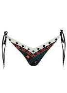 If you're a fan of the itsy bitsy bikini, then add our Sunshine chi-chi cut tie-side bikini bottom to your cart right now! This reversible ray of sunshine comes with a low cut and the best print ever, for the cutest photo ops this summer.