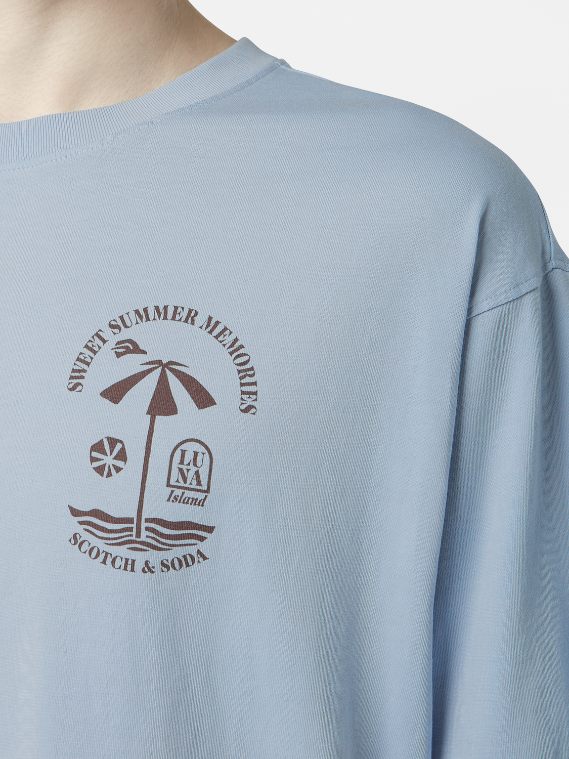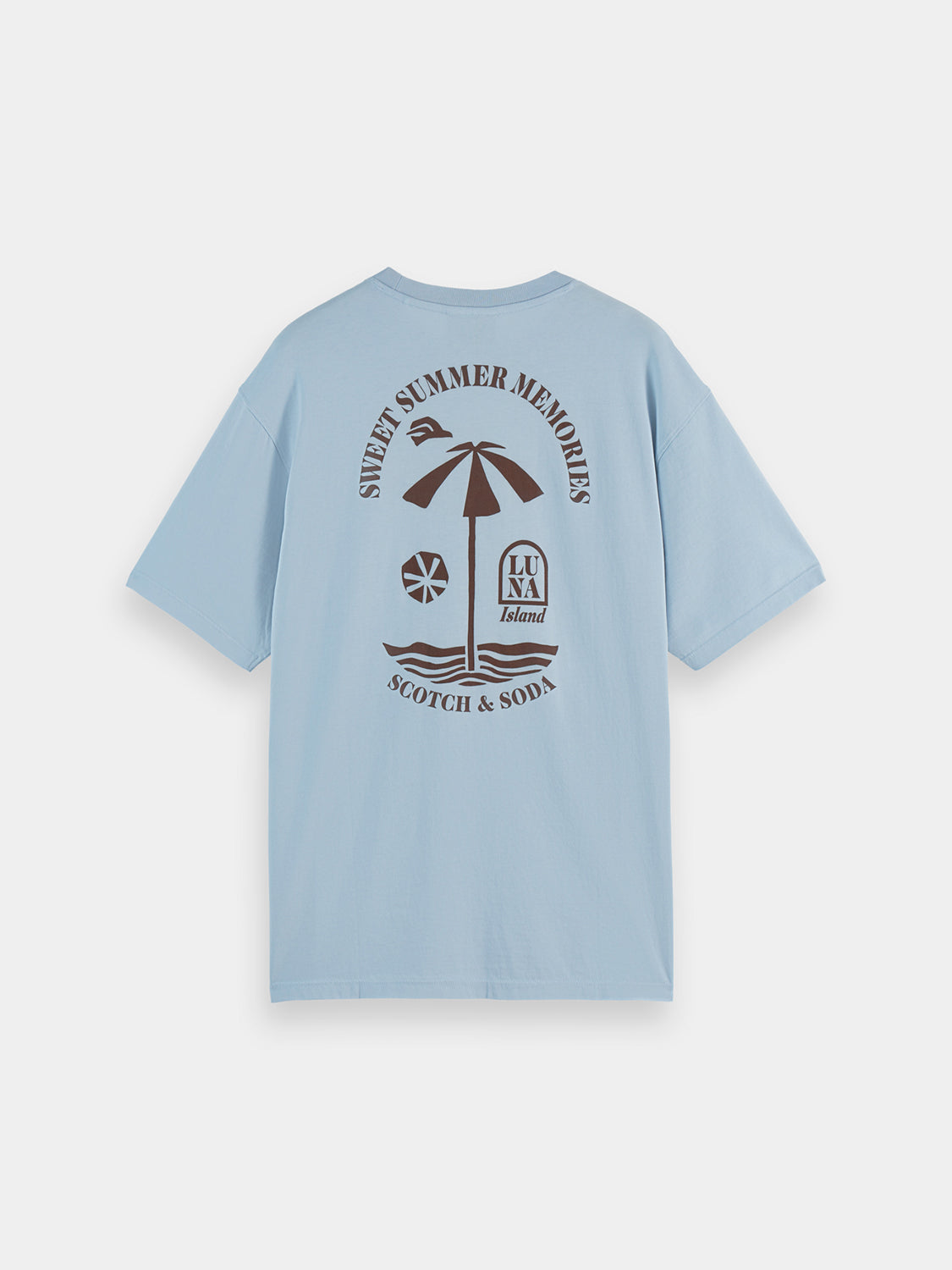 This relaxed fit t-shirt features bold graphics on both the front and back for a bold look.