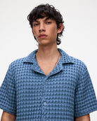 The Coronet Cuba waffle shirt is woven with generous amounts of cotton to a waffle texture that feels particularly soft and breezy against skin. The relaxed silhouette features boxy sleeves, a resort collar and buttons running down the front.