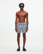 The Marbling swim shorts are tailored from a quick-drying shell fabric, featuring a pattern of abstract shapes inspired by Matisse’s paper cut-outs. Cut for a relaxed, straight fit with an elasticized drawstring waistband and built-in mesh briefs for comfort and support. Keep your keys and cards securely stored in the hidden zip pocket.