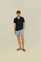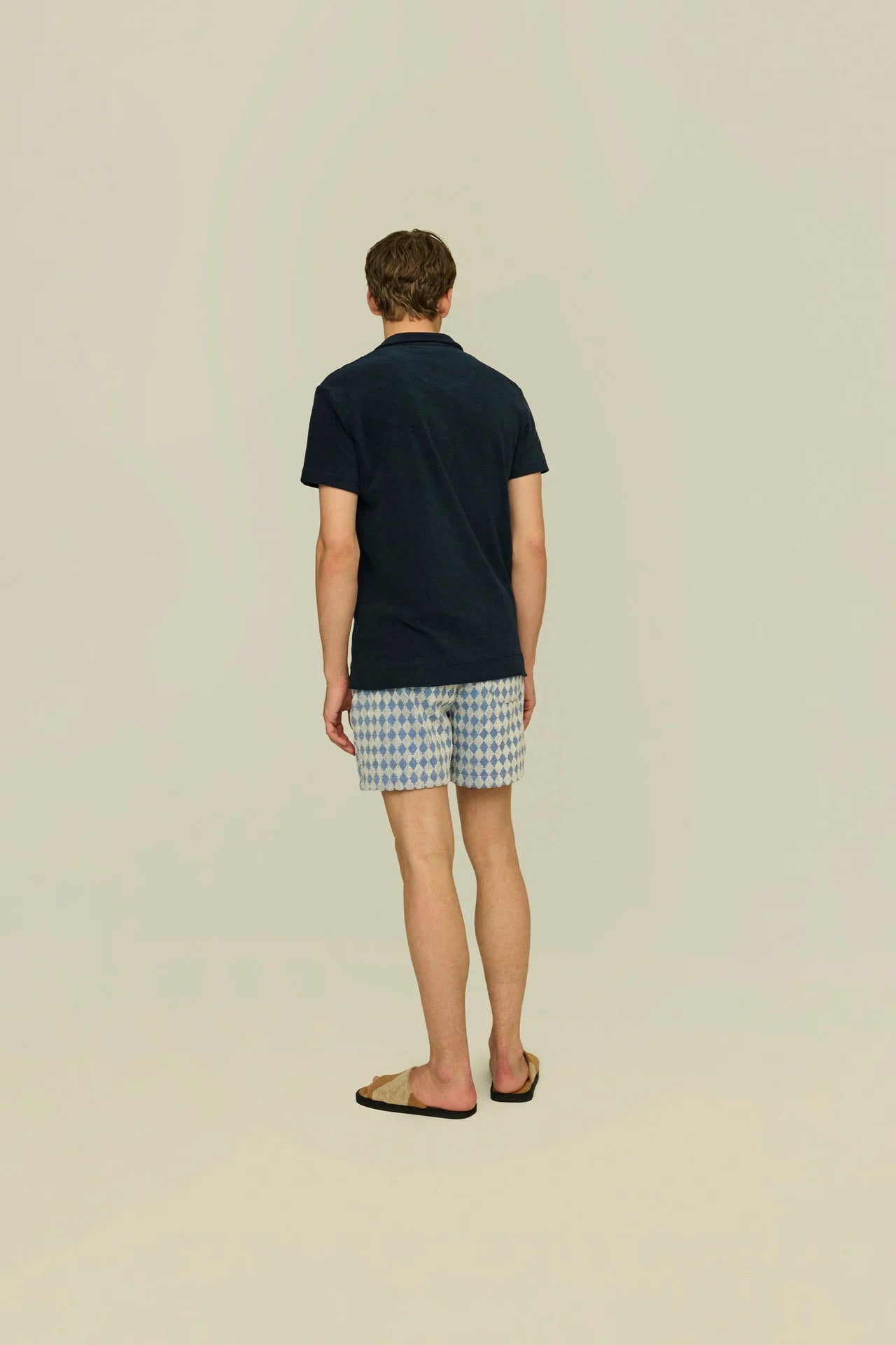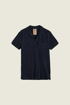 The Navy Polo terry shirt is a short-sleeve silhouette knitted from midweight cotton terry that’s soft and breathable. Designed for warm-weather dressing with a polo collar and embroidered chest pocket.