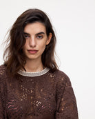 The Astrea Pegasus crochet dress features a see-through crochet pattern that echoes the warmth of the blazing summer sun. While its intricate weave and hand-appliquéd binding offers versatile styling possibilities, the breezy silhouette makes it a perfect cover-up on beach days.