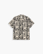 Short sleeved lightweight viscose shirt in black with abstract pattern in ecru. Silky, breathable fabric with soft drape. Relaxed fit with slightly dropped shoulders.