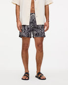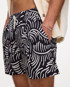The Tar Lorenzo swim shorts are tailored from a brushed, quick-drying shell fabric, printed all over with botanical freehand strokes. Cut for a relaxed, straight fit with an elasticized drawstring waistband and built-in mesh briefs for comfort and support. Keep your keys and cards securely stored in the hidden zip pocket.