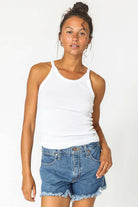 Our ribbed tank features a high neck and form fitting body. perfect on its own or layer in the colder months.