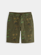 Embrace a bold look with these relaxed fit shorts, featuring an all-over military floral print. Crafted with belt loops and button closure for a secure fit, these shorts mix functionality with unique style.