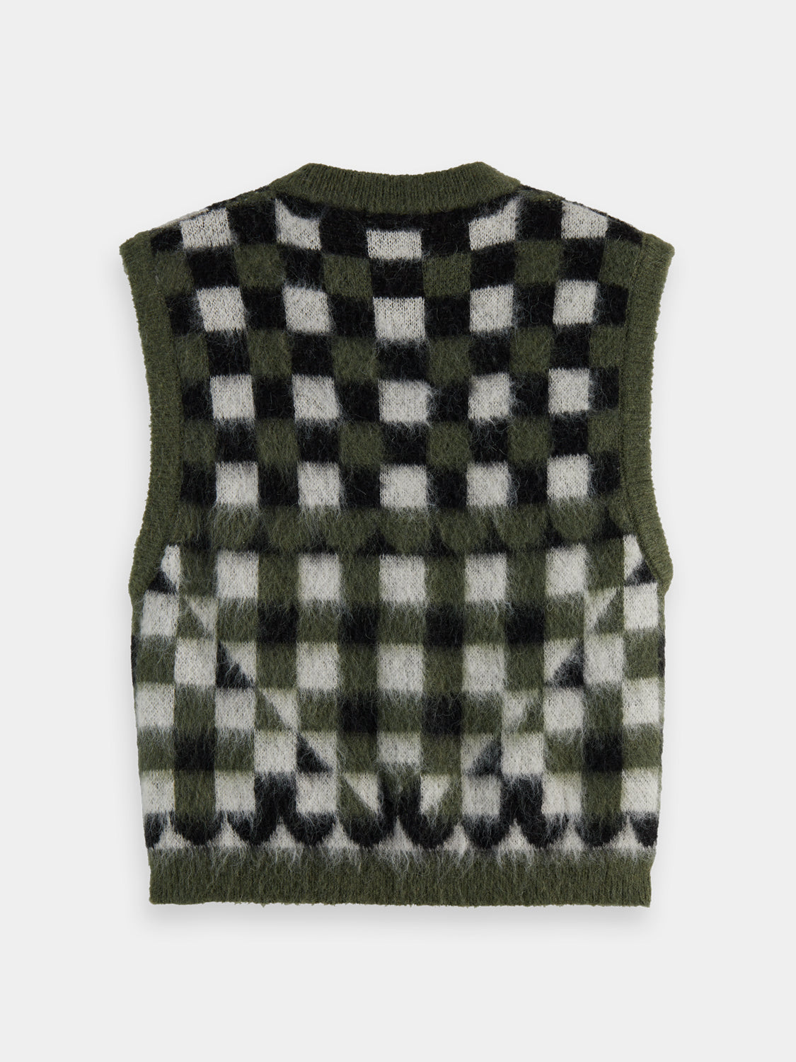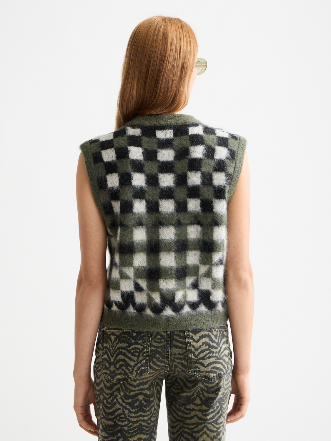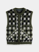 This sleeveless spencer is crafted from fuzzy jacquard knit - bringing a rich, tactile feel and standout texture that's perfect for playful layering.