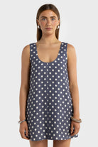 Nora Linen Mini Dress - Harbour Blue Polkadot