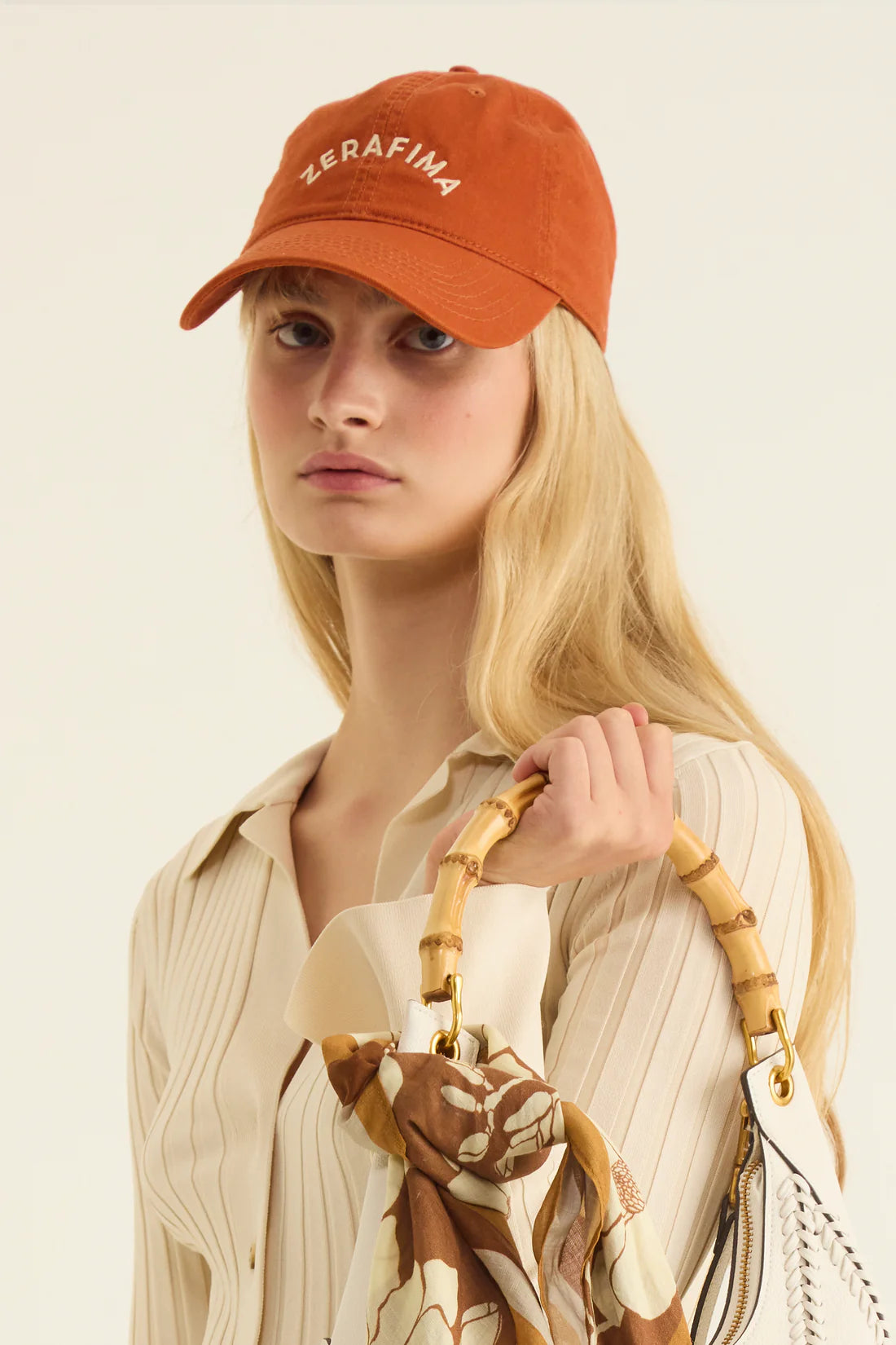 The Zerafima Logo Cap is a summer wardrobe essential. Featuring Cotton canvas fabrication, adjustable fit, brass hardware and logo embroidery.