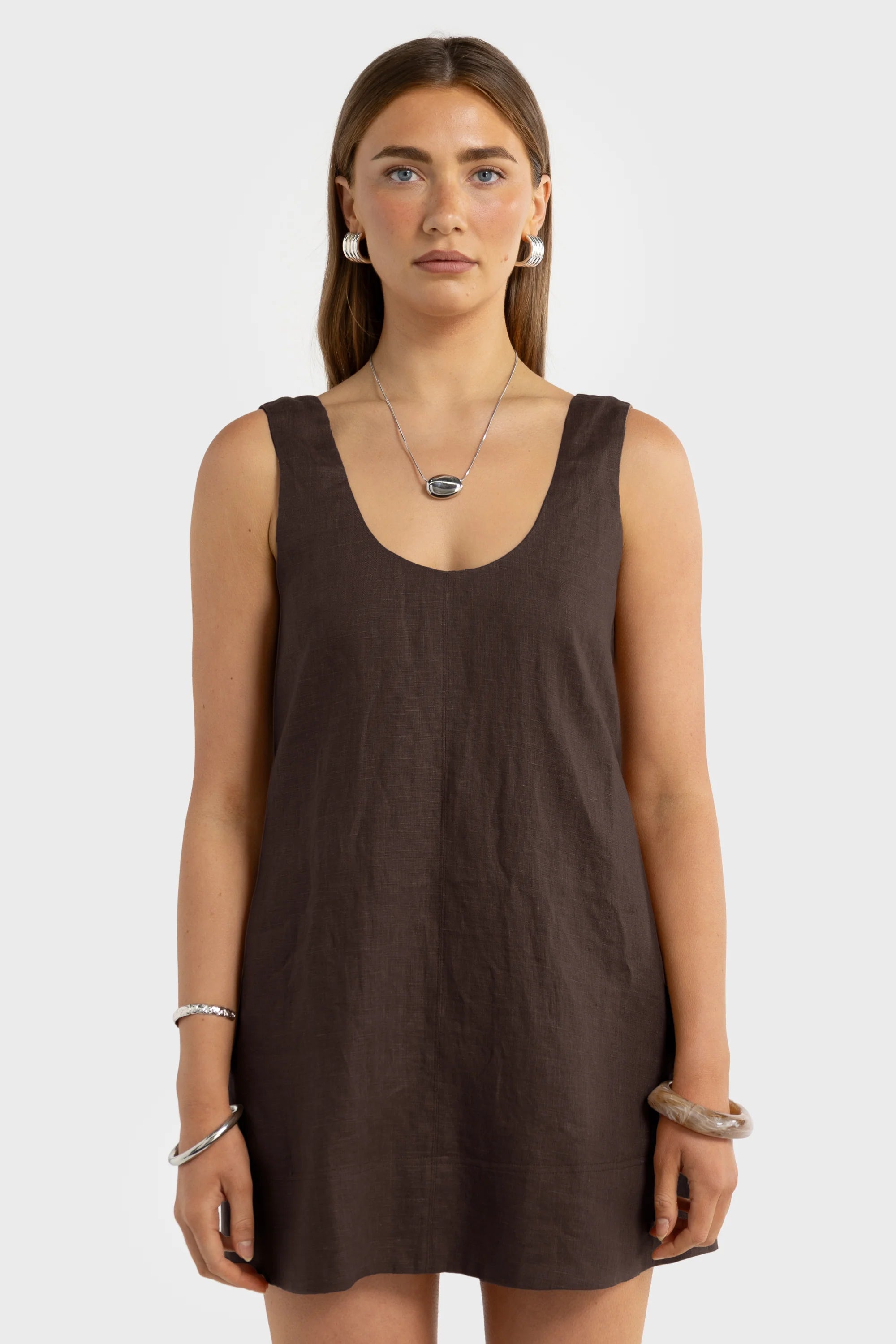 Nora Linen Mini Dress - Carob