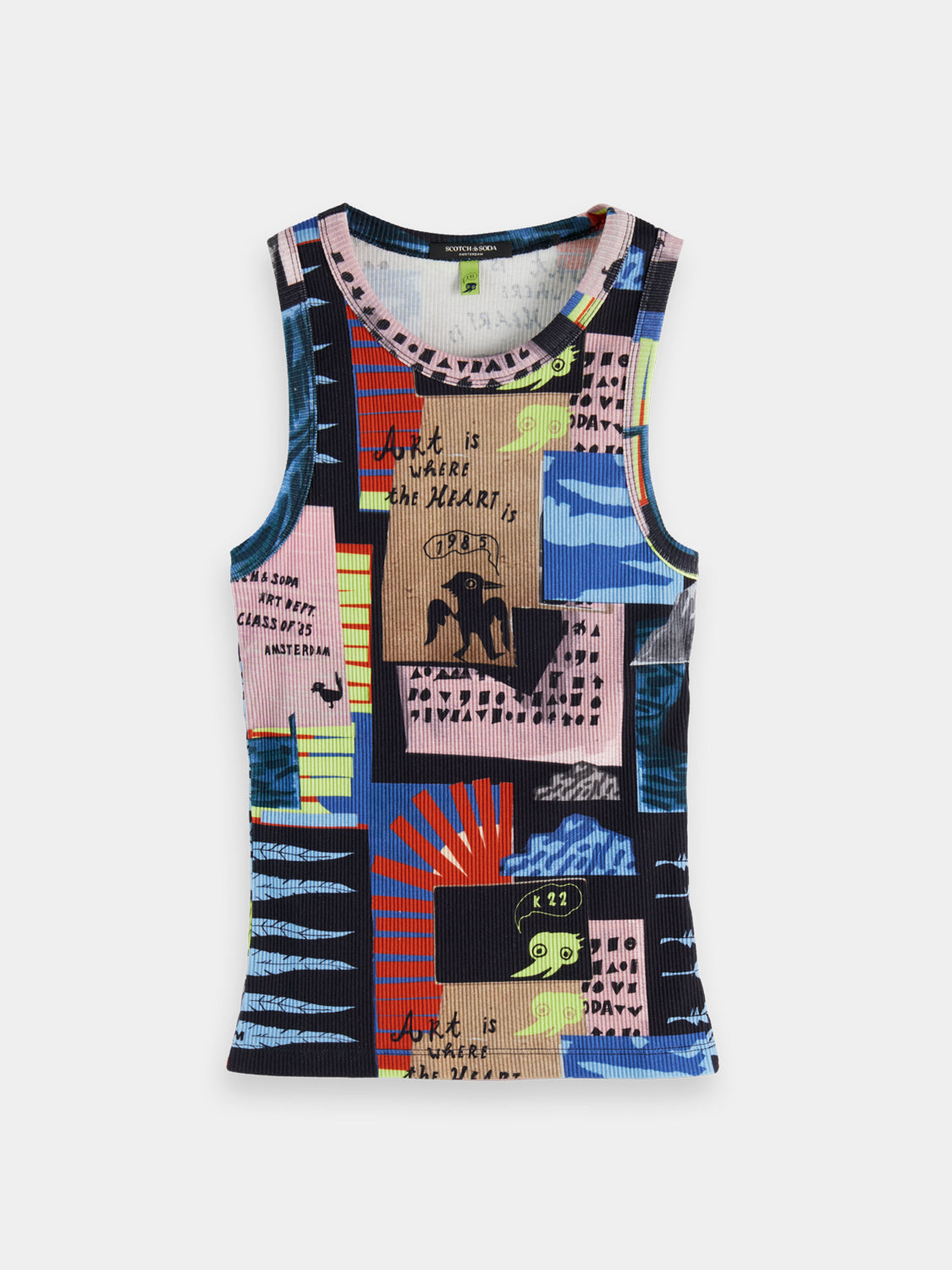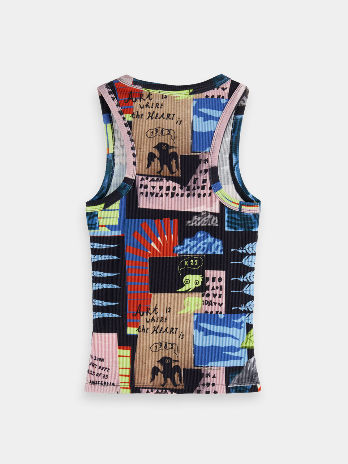 Printed ribbed racer tank - Art Dept Collage Multicolour