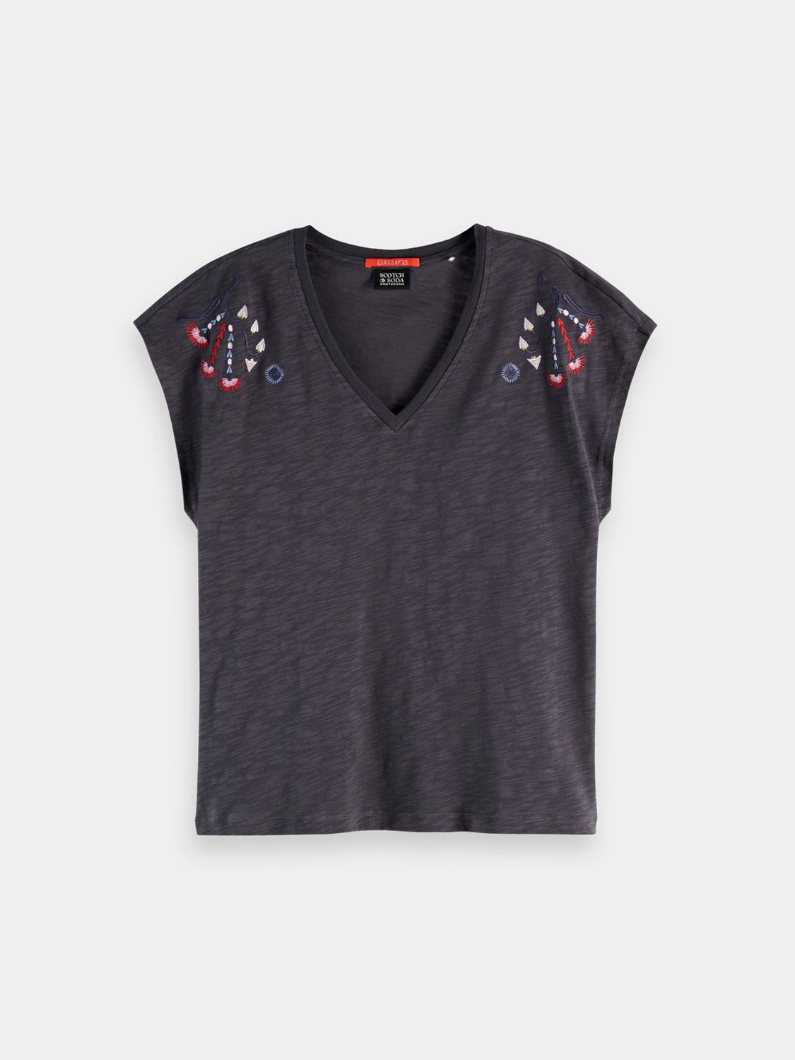 Embroidered v-neck t-shirt - Charcoal Art