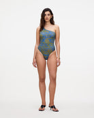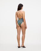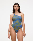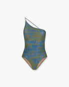 The Highland Tuffo bathing suit is shaped to a one-shoulder silhouette that turns to reveal an open back. Made in a UV-protective stretch fabric with a soft sheen, based on recycled fabrics - it has a modern, minimalist cut with concealed seams for a sleek look. Printed with an abstract motif that reflects the irregular beauty of nature. Fully lined.