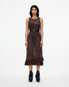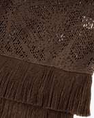 The Astrea Ari crochet dress lends comfort and ease on balmy days with a see-through crochet pattern that pays tribute to the blazing summer sun. Featuring a rounded neckline and a low-slung back, the midi silhouette falls to an asymmetric hem traced with soft fringing.