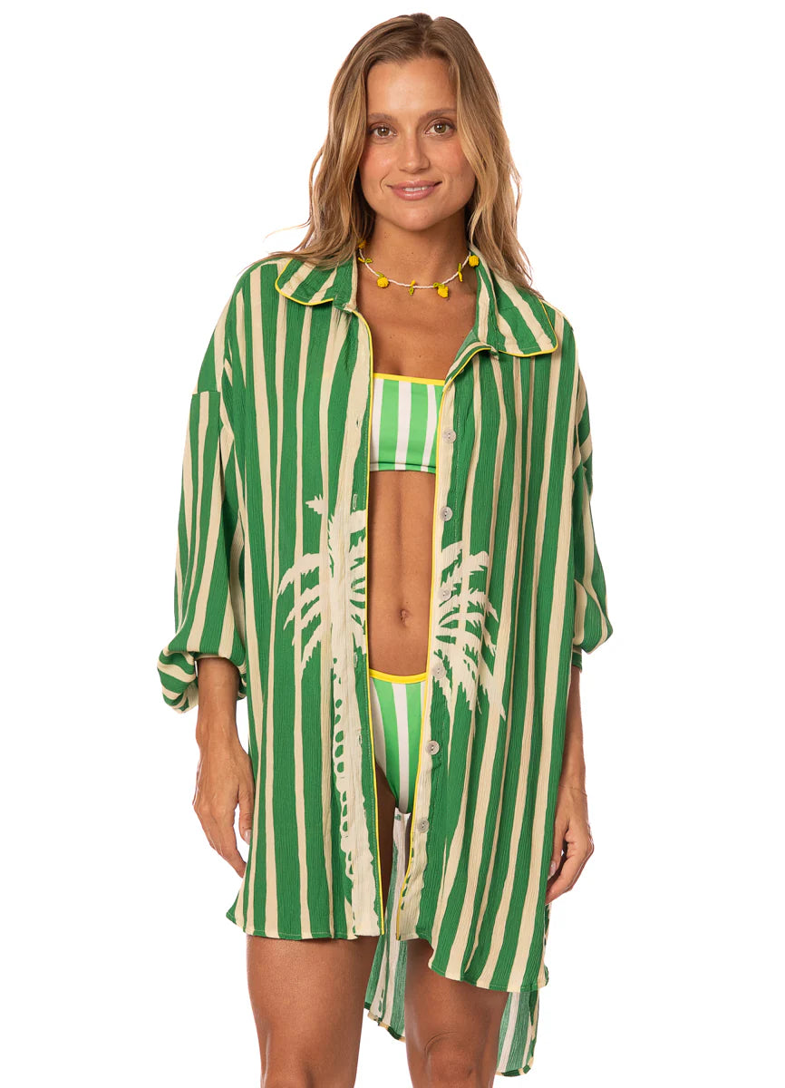 How can you not take on a vacation state of mind while wearing our Aloha View print? The Dreambound shirt will perfectly complement your swimwear choice and go with you for every moment of your sultry summer.