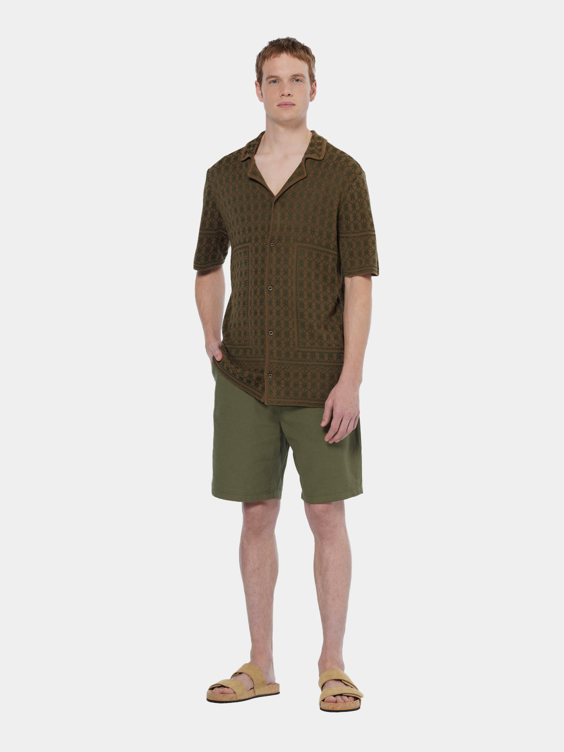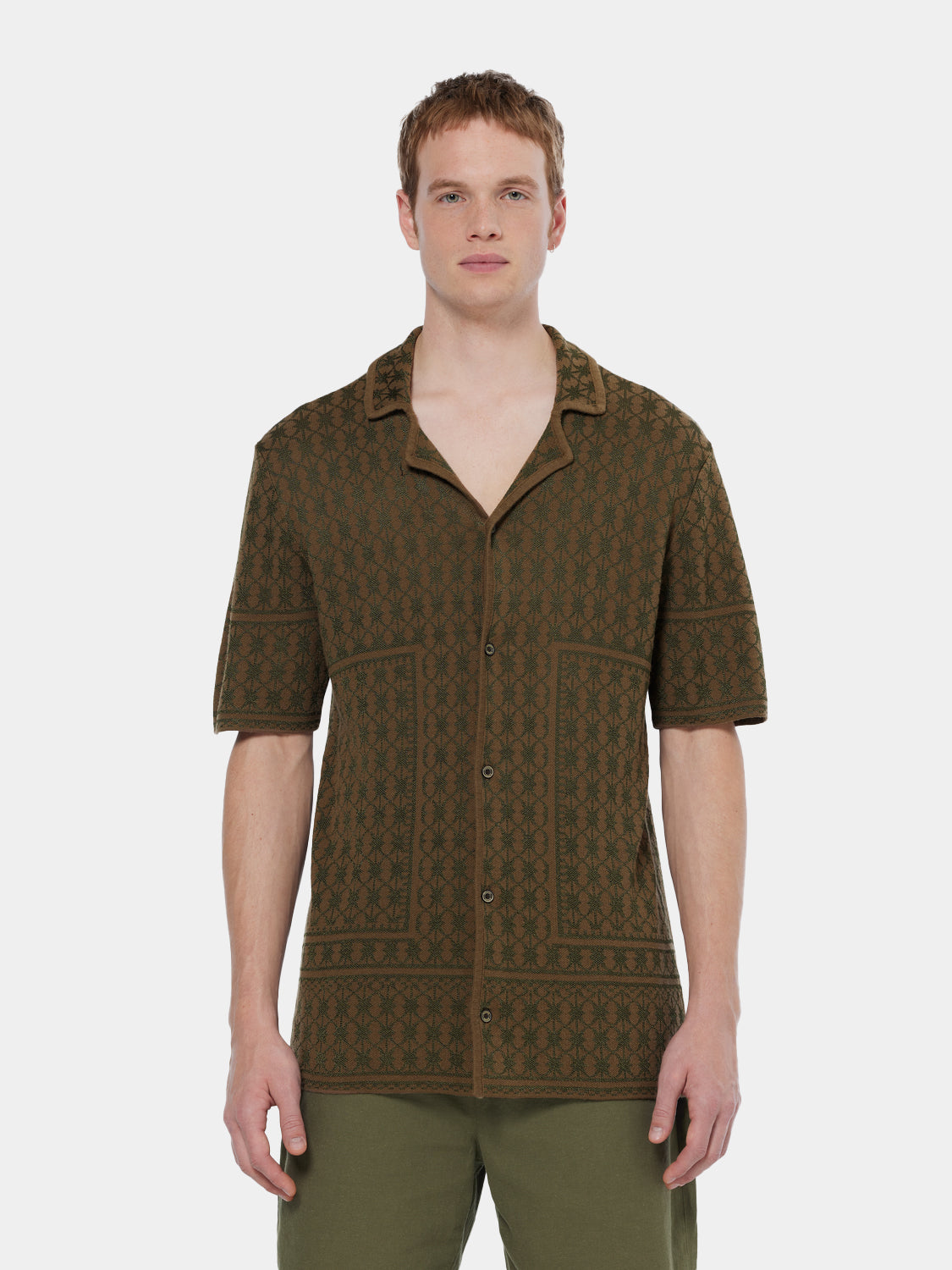 This shirt combines the elegance of jacquard knit with the casual style of a short sleeve, collared button-up. Whether you're attending a social gathering, a casual dinner, or a day out in the city, this shirt ensures you stand out with its distinctive style.