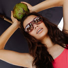 A chic retro-inspired rectangular aviator sunglass for smaller face shapes.
